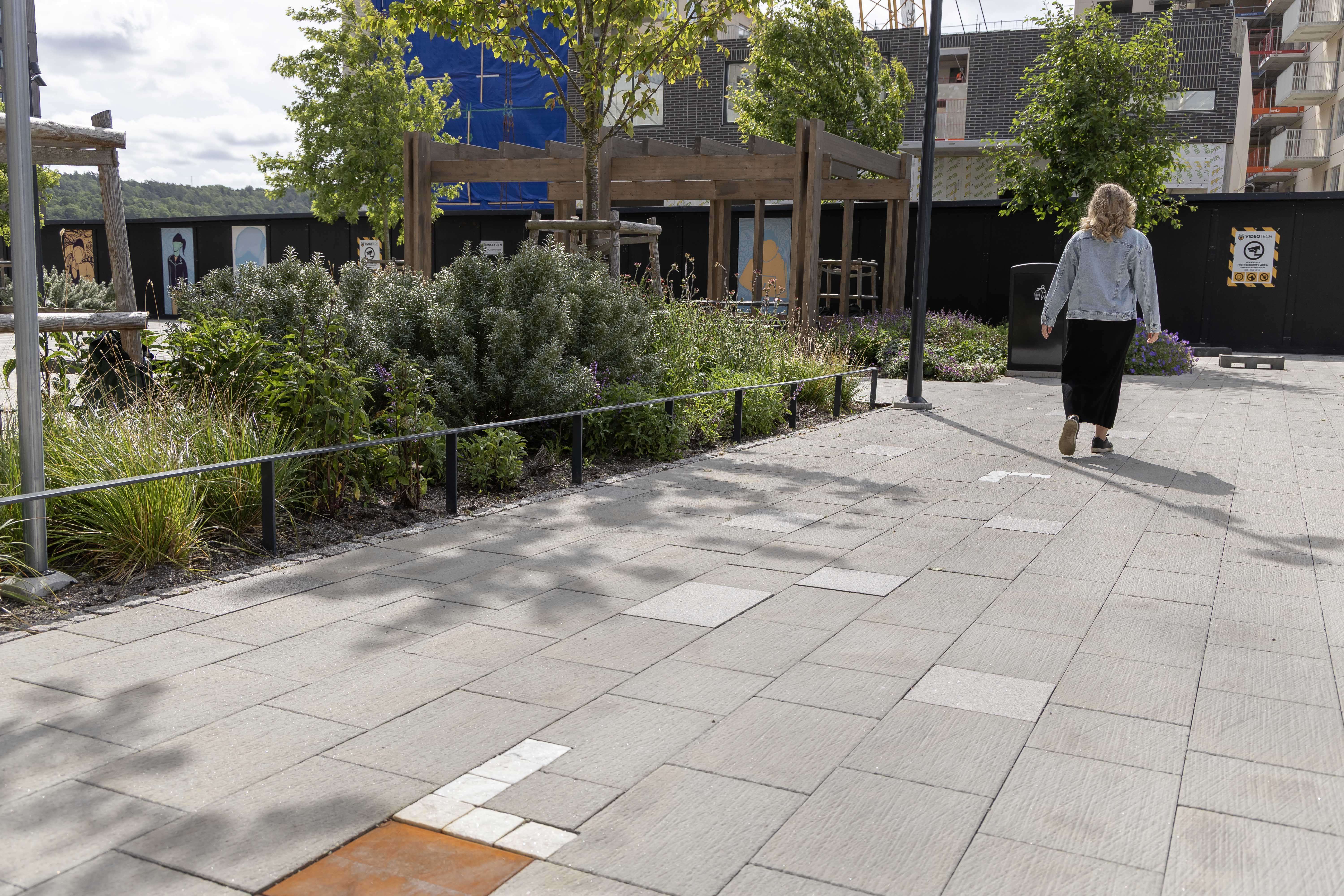 Den präglade och borstade ytan ger plattorna en unik och livfull struktur, som bidrar till både funktion och estetik i urbana miljöer.