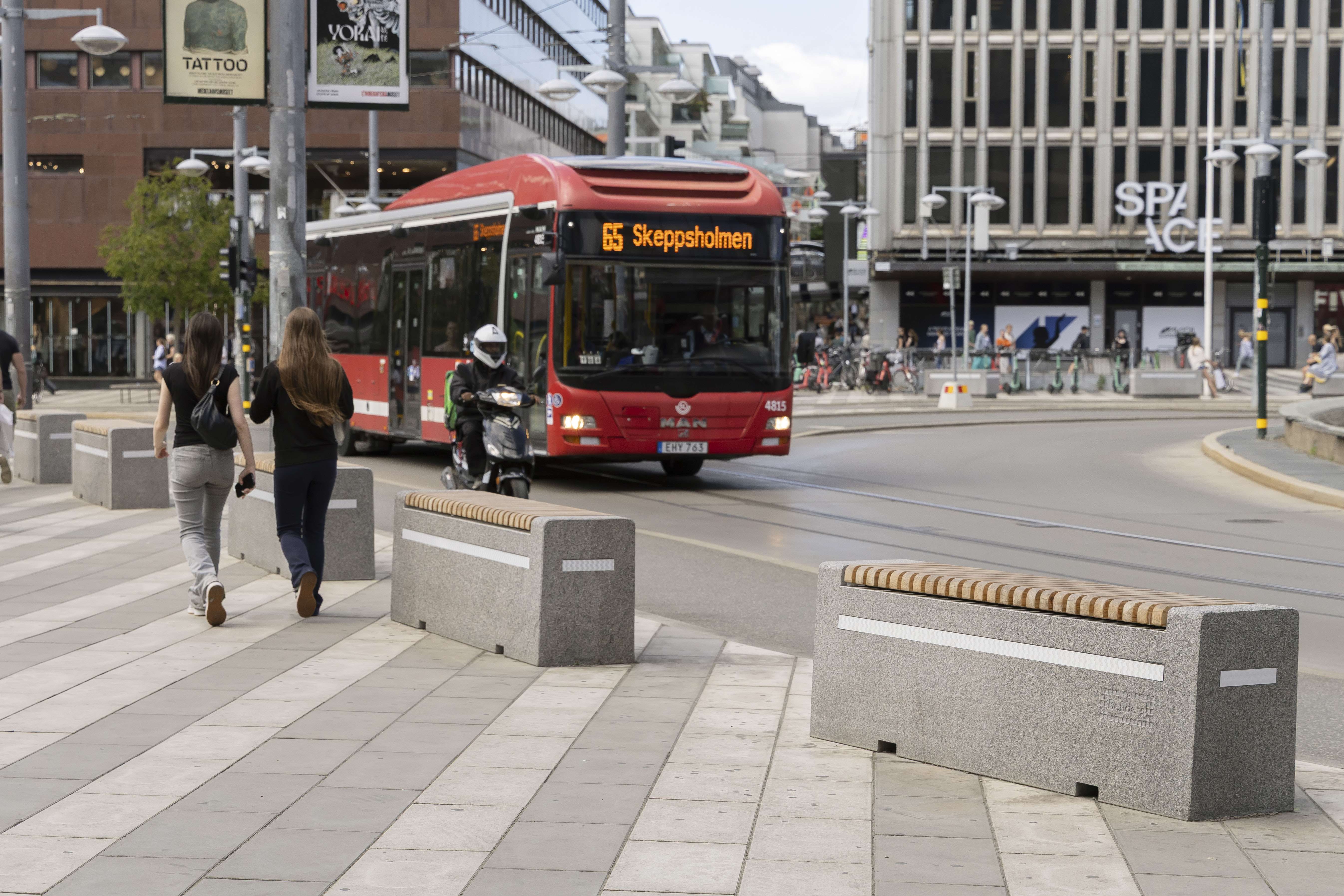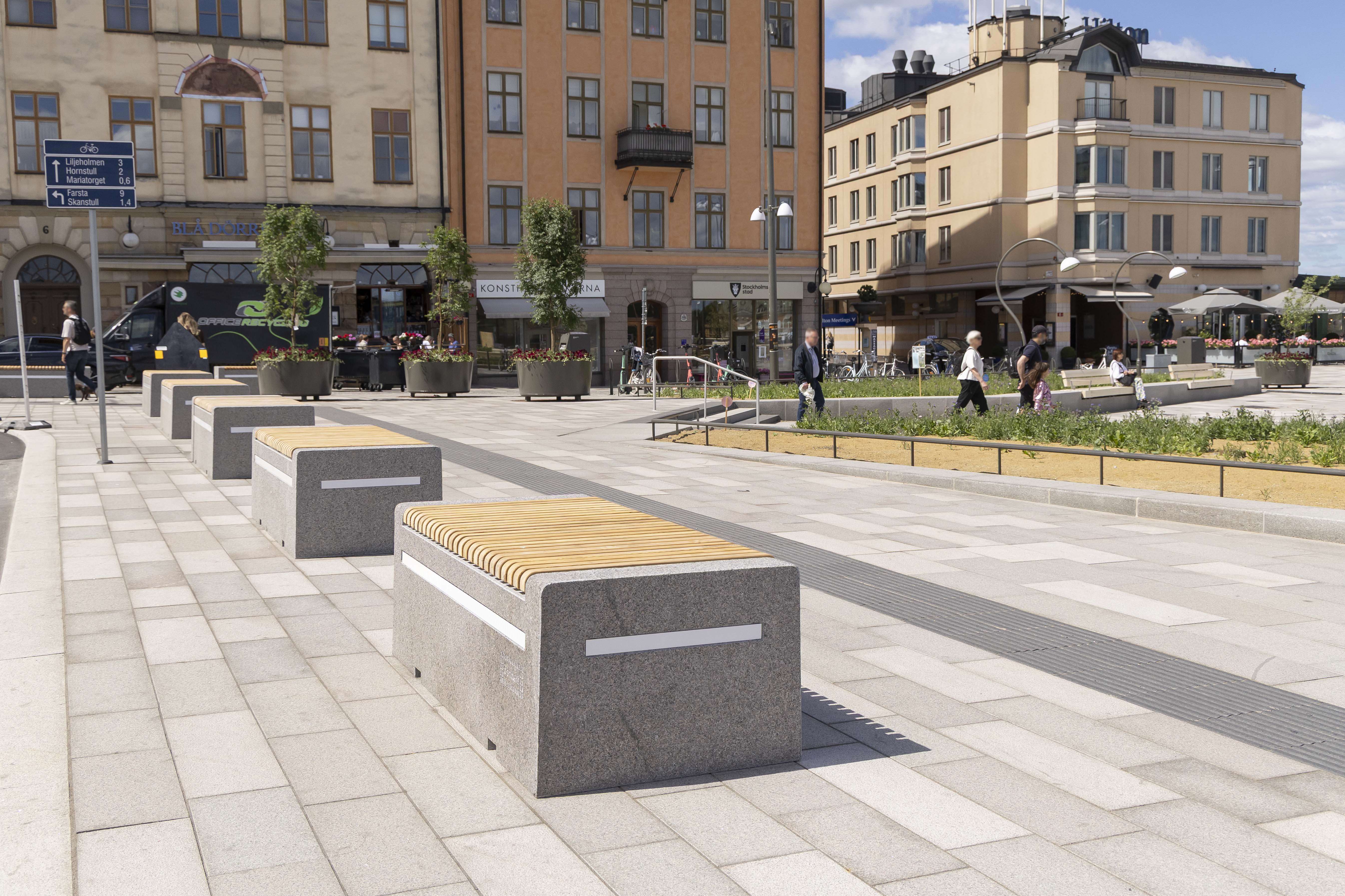 I arbetet med Nollvisionen kombinerar Stockholms stad trafiksäkerhet med trivsel i stadens offentliga rum. Produkter som bänkar, sittplatser och stora blomkrukor är inte bara till för att skapa mysiga miljöer – de fungerar också som fysiska skydd mellan människor och fordon. Genom att placera ut trafikhinder skapas tydliga gränser som dämpar hastighet och hindrar obehörig trafik. Möbleringen bidrar därmed både till trygghet och till levande, sociala ytor där människor kan vistas säkert och produkterna bidrar även till att gator och torg blir mer inbjudande. Stockholms stad har investerat i flera av våra trafikprodukter som alla är flyttbara och kan flyttas runt år efter år beroende på vart behovet finns. Produkter som ni hittar på deras offentliga ytor är bland annat Bohus Safe, Bohus Nord, Sicura, och de specialbeställda småkronorna. |