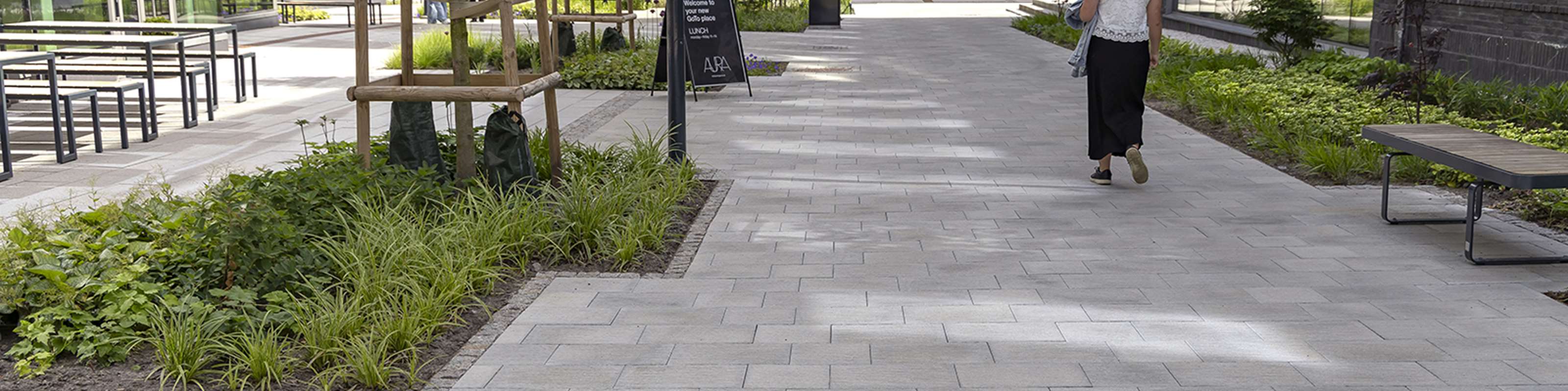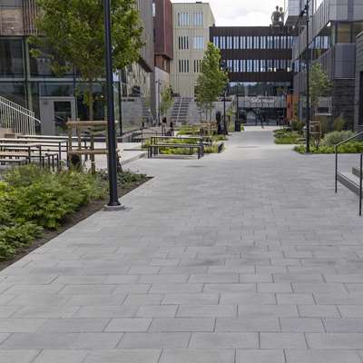 I Mölndal, strax söder om Göteborg, ligger den nya stadsdelen GoCo Health Innovation City och dess huvudbyggnad Goco House. Här möts företag, forskare och organisationer inom life science, så som hälsa, medicin och bioteknik, i en innovativ och kreativ miljö. Stadsdelen kombinerar moderna kontorsbyggnader med restauranger och mötesplatser som främjar samverkan och nätverkande. Till markytor utanför GoCo House har Benders levererat Bender City Borstad, en serie plattor som är 100 mm tjocka och speciellt utvecklade för stadsmiljöer med höga belastningar och stora påfrestningar. Den präglade och borstade ytan ger plattorna en unik och livfull struktur, som bidrar till både funktion och estetik i urbana miljöer. |