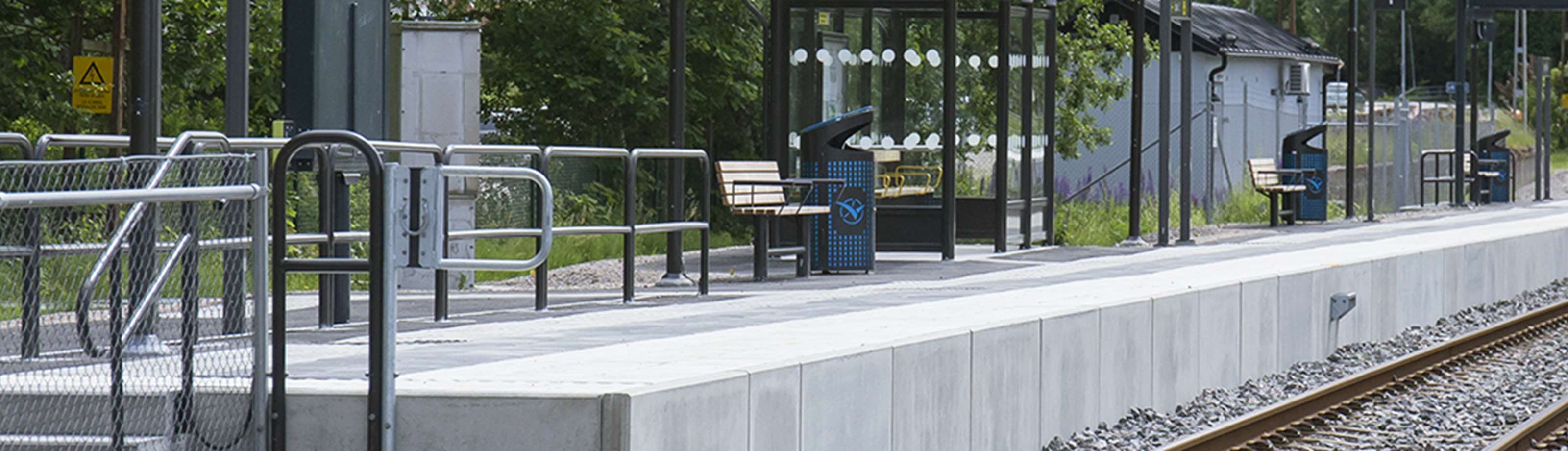 Används i kombination med perrongstöd som en yttre kant på perrongen. Kombineras med fördel ihop med släta och taktila plattor från vårt Star-sortimentet för att uppnå maximal ljushetskontras och för att göra perrongen tillgänglig för alla resenärer.